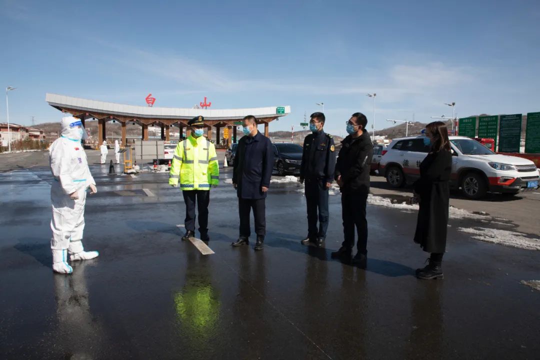 3月17日,市交通运输局党组成员、副局长张世峰一行,深入白山高速口联合防疫检查站,检查督导疫情防控工作,看望慰问一线值守人员。